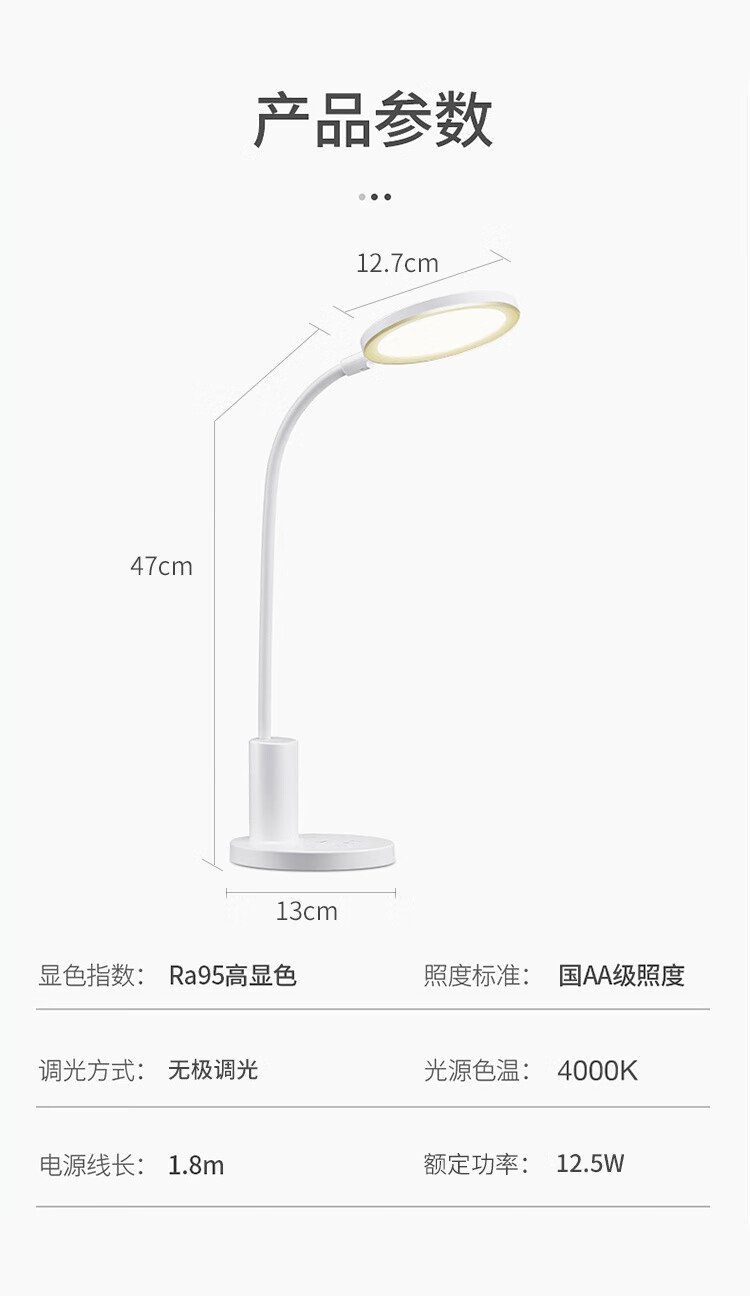 美的 台灯 MTD12.5-M/K-05 学习护眼灯卧室床头家用阅读灯智能感光